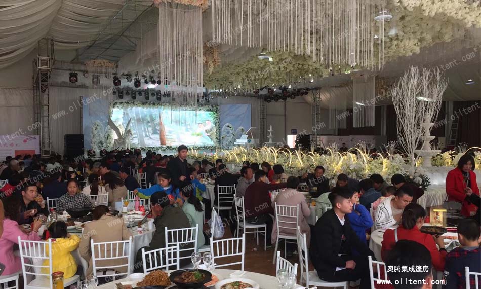 奧騰集成篷房在婚禮篷房生產搭建方面有足夠的經驗,有多種婚禮篷房產品供應,如人字頂篷房、歐式尖頂篷房、透明婚宴篷房等等,都適用于婚禮婚慶,尺寸方面跨度可以從3-50m不等,長度可按3或5m的倍數無限延伸,不論是多大規(guī)模的婚慶篷房都可以滿足。在場地上的選擇和婚禮布置也是相當自由,有中式、歐式、田園、可愛、大氣、浪漫等風格可選。戶外婚慶篷房在搭建上不受場地限制,所以你完全可以將婚禮選擇在浪漫的自家院子、門口小路、農村鄉(xiāng)道、小區(qū)過道、海邊沙灘、舒適自然的草地上舉行,并結合周邊環(huán)境和自己的想法隨意布置婚禮!