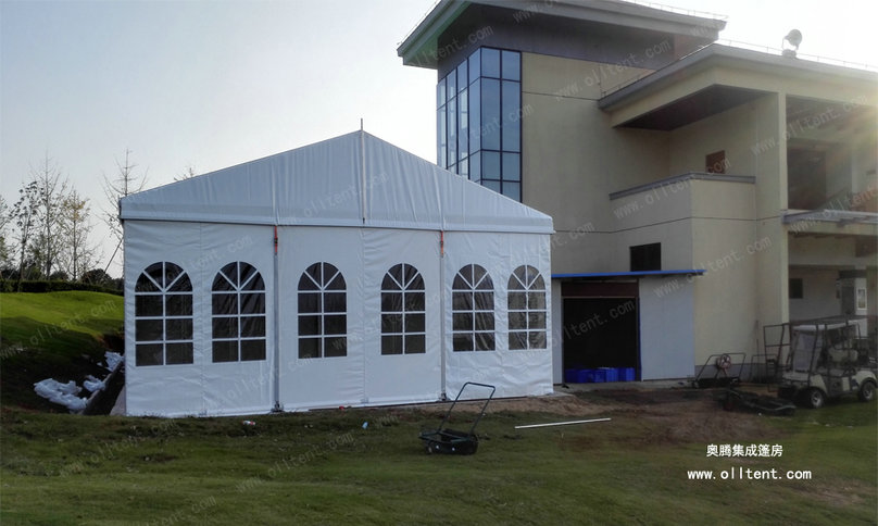 JX系列小型篷房常規(guī)寬度是6米、9米、12米、15米共四種常用尺寸。篷檐高度(邊高)是3米。篷房的結(jié)構(gòu)采用單元組合式設(shè)計(jì),長(zhǎng)度可按3米間距增加或減少。支架的主要構(gòu)件(立柱和斜梁)用四槽的122×68×3㎜四槽的高強(qiáng)度氧化鋁合金管材制造,篷布采用阻燃的雙面PVC刀刮布,符合歐洲DIN4102B1、M2標(biāo)準(zhǔn)。克重650、750、850克/平方米,有遮光和半透光兩種篷布選擇,篷房同樣可以配套ABS墻體、三明治墻體、彩鋼瓦墻體、玻璃幕墻、排水槽等豐富的配置,滿足各種功能需要。