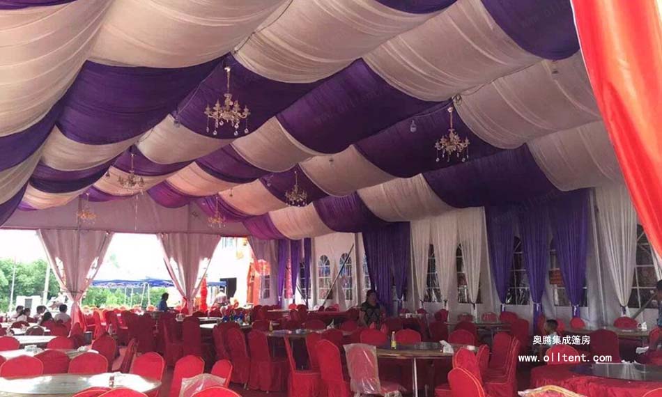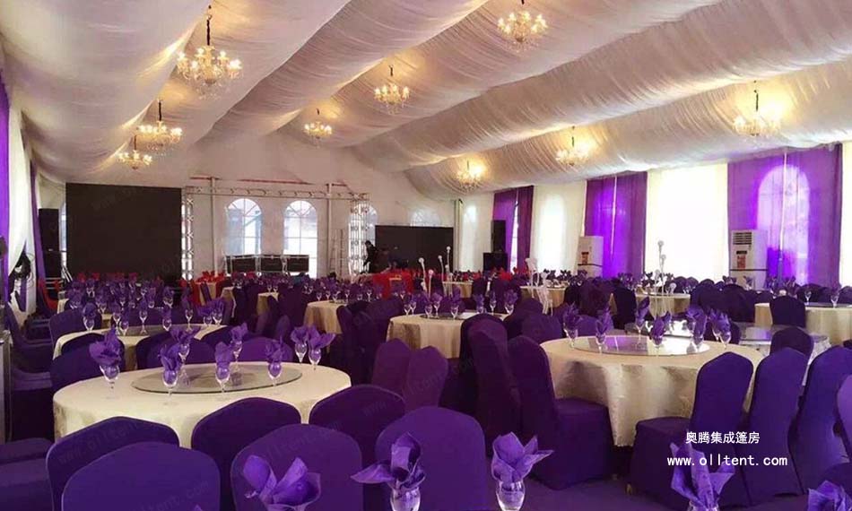 隨著社會經濟發展,居民生活質量不斷提高,人們對舉辦婚慶婚禮活動的要求也越來越高,奧騰集成篷房公司生產的婚宴篷房、婚慶帳篷、婚禮帳篷、宴會帳篷、家宴帳篷、酒席帳篷、正迎合這市場需求。