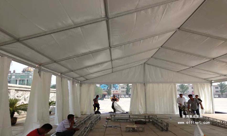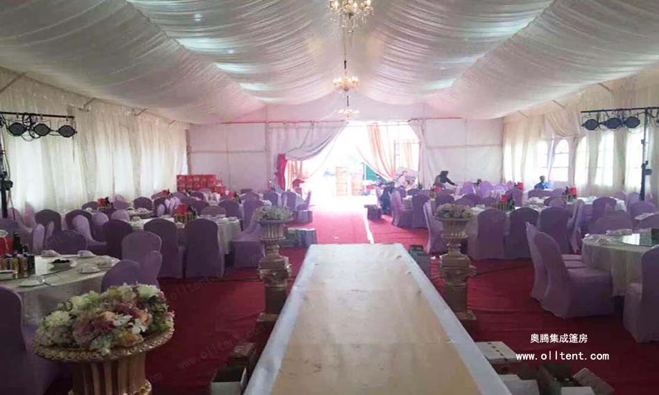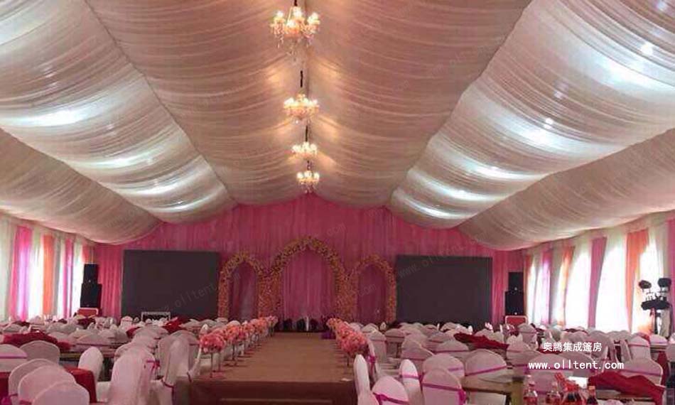 隨著社會經濟發展,居民生活質量不斷提高,人們對舉辦婚慶婚禮活動的要求也越來越高,奧騰集成篷房公司生產的婚宴篷房、婚慶帳篷、婚禮帳篷、宴會帳篷、家宴帳篷、酒席帳篷、正迎合這市場需求。