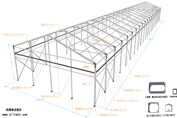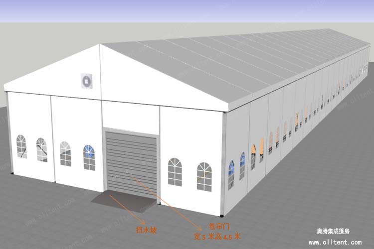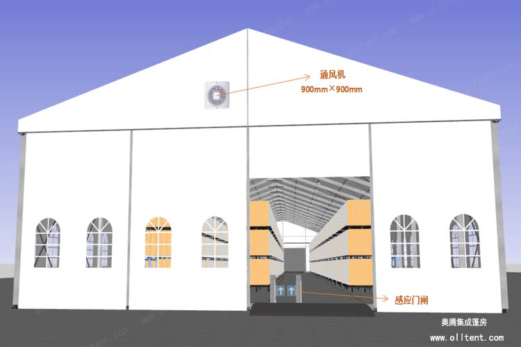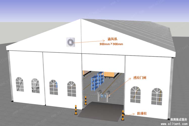 倉儲篷房還有多種可供選購的配置,使篷房功能更加強大。例如:ABS墻體、三明治墻體、彩鋼瓦墻體、玻璃幕墻、透明頂、頂幔布幔內飾、排風扇、卷簾門、玻璃門、承重盤承重框、地板系統、排水槽等